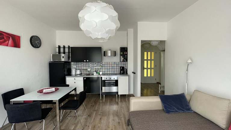Die Unterkunft bietet eine voll ausgestattete Küche mit Kühlschrank, Ofen, Mikrowelle, Herdplatte, Toaster, Kaffeemaschine und Wasserkocher. Es stehen keine speziellen Verpflegungsmöglichkeiten zur Verfügung.