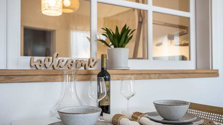Das Ferienhaus hat ein Schlafzimmer, ein Wohnzimmer mit TV, eine gut ausgestattete Küche mit Kühlschrank und Geschirrspüler sowie ein Badezimmer mit Dusche. Handtücher und Bettwäsche werden bereitgestellt.
