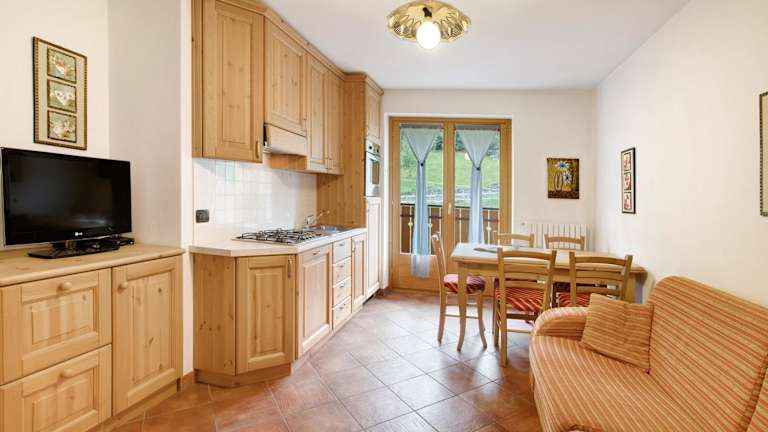Die Ferienwohnung bietet Platz für bis zu vier Personen und umfasst zwei Schlafzimmer sowie ein gemütliches Wohnzimmer mit TV. Die gut ausgestattete Küche beinhaltet einen Kühlschrank und Geschirrspüler. Ein modernes Badezimmer mit Dusche ist ebenfalls vorhanden. Die Unterkunft stellt Handtücher und Bettwäsche zur Verfügung, damit sich die Gäste direkt wohlfühlen können. Die Ferienwohnung hat ausserdem einen direkten Zugang zur Skipiste.