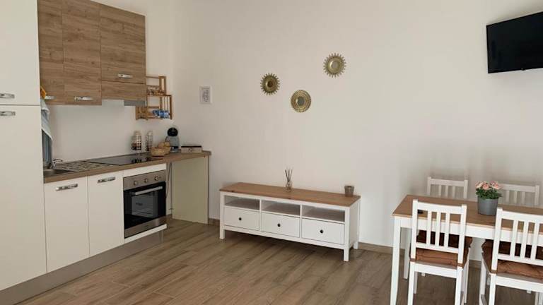 Die Ferienwohnung verfügt über ein Schlafzimmer, ein Wohnzimmer sowie eine voll ausgestattete Küche mit Ofen und Kaffeemaschine. Ein Badezimmer mit Bidet und Dusche ist ebenfalls vorhanden. Zur Ausstattung gehört ein Flachbild-TV. Die Räume sind klimatisiert und bieten eine Heimeligkeit während des Aufenthalts.