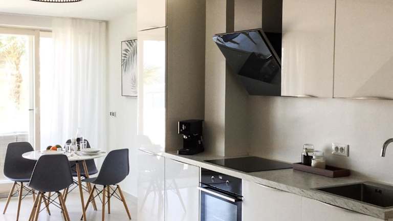 Die Zimmer sind mit einem eigenen Badezimmer mit Dusche und kostenlosen Pflegeprodukten ausgestattet. Die voll ausgestattete Küche beinhaltet einen Kühlschrank, Geschirrspüler, Herdplatte, Kaffeemaschine und Wasserkocher. Zur Ausstattung gehören zudem Satelliten-TV und die Bereitstellung von Bettwäsche und Handtüchern.