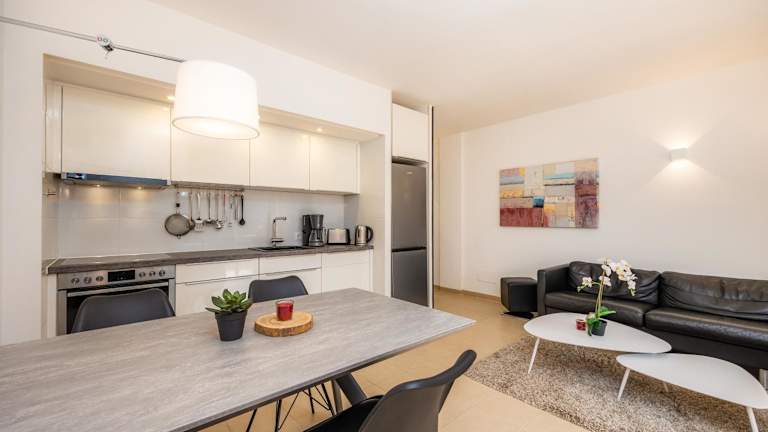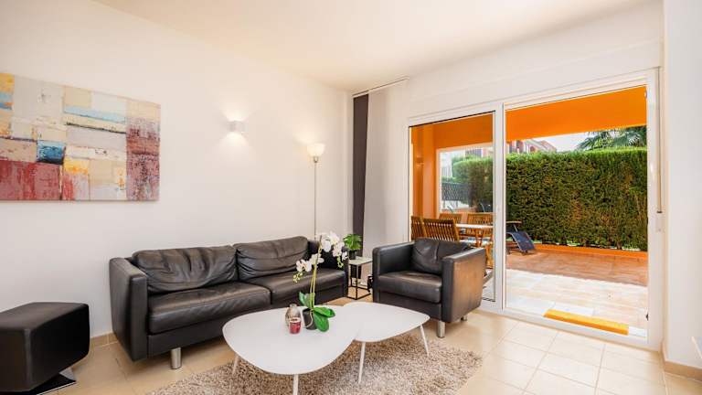 Die Ferienwohnung bietet 2 Schlafzimmer, 2 Badezimmer, eine voll ausgestattete Küche, einen TV mit Kabelkanälen sowie eine Terrasse mit Gartenblick. Die Unterkunft ist klimatisiert und umfasst Einrichtungen wie Heizung und bietet zudem ein Babybett für Kleinkinder an.
