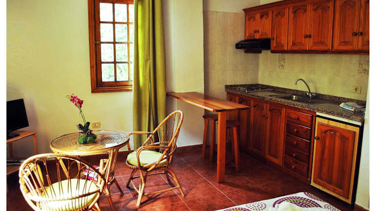 In den Apartamentos steht eine voll ausgestattete Küche zur Verfügung, in der die Gäste ihre Mahlzeiten selbst zubereiten können. Sie finden unter anderem einen Kühlschrank, eine Herdplatte, einen Toaster, eine Kaffeemaschine und einen Wasserkocher. Grillmöglichkeiten sind ebenfalls vorhanden.