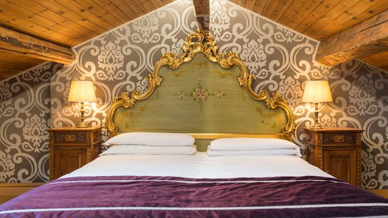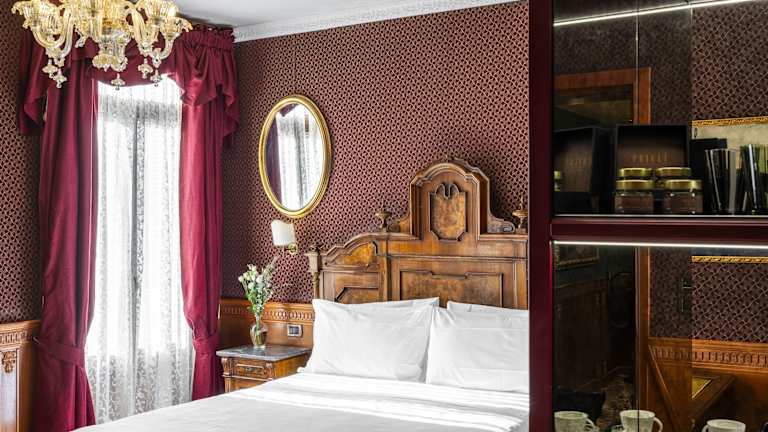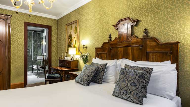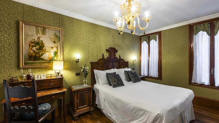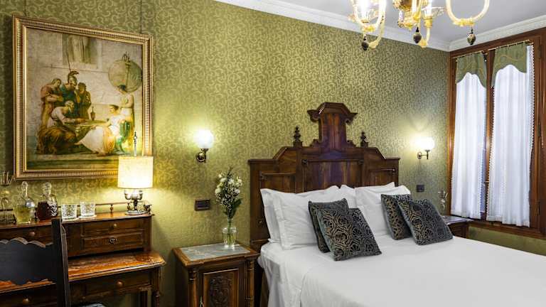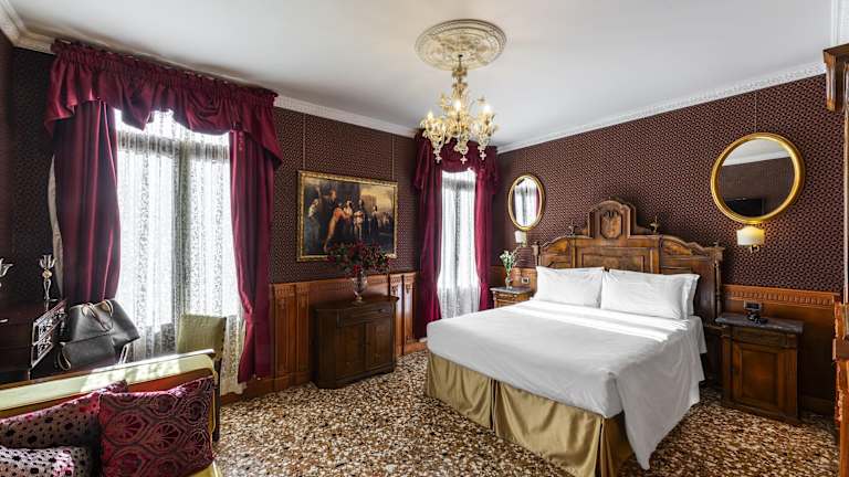 Die klimatisierten Zimmer sind mit einem Doppelbett, einem Sofabett und einem eigenen Bad mit Dusche und Badewanne ausgestattet. Zur Zimmerausstattung gehören auch ein Safe, eine Minibar, ein Kühlschrank sowie ein TV-Gerät mit Satelliten-/Kabelempfang. Einige Zimmer sind im Renaissance-Stil dekoriert und verfügen über Muranoglas-Lampen, viele bieten zudem einen Blick auf den Kanal. Rollstuhlgerechte Zimmer sind ebenfalls buchbar.