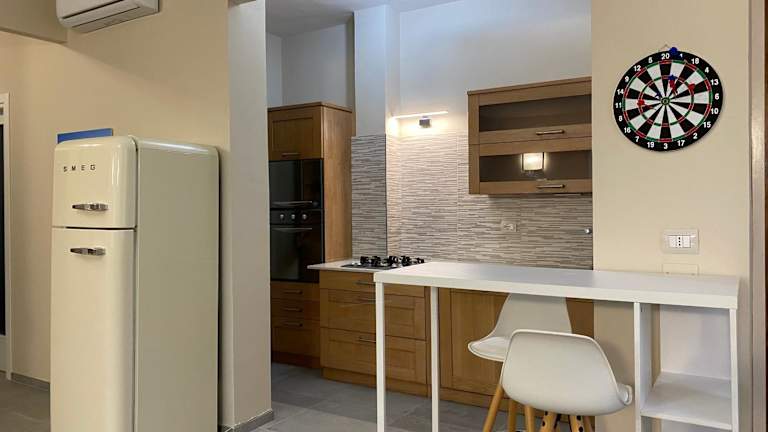 Die Ferienwohnung besteht aus einem Schlafzimmer, einem Wohnzimmer sowie einer voll ausgestatteten Küche mit Kühlschrank. Das Badezimmer verfügt über ein Bidet und einen Haartrockner. Die Unterkunft bietet zudem Handtücher und Bettwäsche an, und ist klimatisiert.