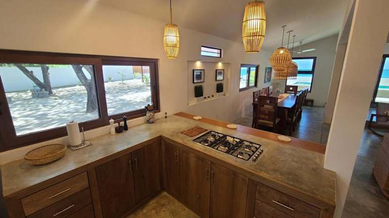 Die Villa ist klimatisiert und beinhaltet vier Schlafzimmer, eine voll ausgestattete Küche sowie zwei Badezimmer. Zudem bietet die Unterkunft einen Balkon mit Blick auf das Meer. Einrichtungen wie tägliche Reinigung und ein Waschsalon/Wäscheservice stehen gegen zusätzliche Gebühren zur Verfügung.