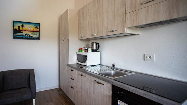 Die Ferienwohnung besteht aus 2 Schlafzimmern und einem Wohnzimmer. Eine voll ausgestattete Küche mit Kühlschrank und Wasserkocher sowie 2 Badezimmer mit Bidet und Dusche sind ebenfalls vorhanden. Handtücher und Bettwäsche werden bereitgestellt, und die Klimaanlage sorgt für eine angenehme Bequemlichkeit.