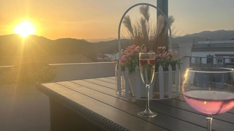 Die Unterkunft verfügt über eine Bar und eine voll ausgestattete Küche, die es Gästen ermöglicht, selbst zu kochen und die Mahlzeiten bequem im Essbereich oder auf der Terrasse mit Blick auf die Berge einzunehmen.