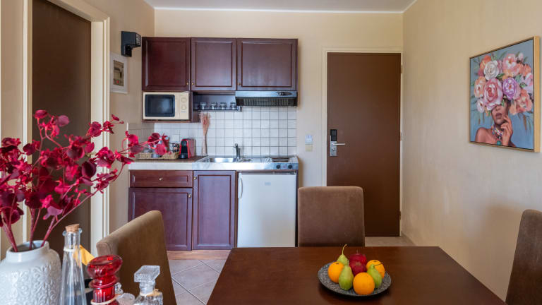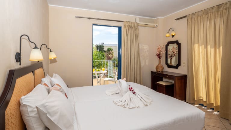 Die Zimmer sind mit Klimaanlage ausgestattet und verfügen meistens über einen Balkon. Die meisten Zimmer bieten ein Doppelbett oder ein Sofabett sowie separate Schlafzimmer. Für die jüngsten Gäste sind Kinderbetten verfügbar. Weitere Annehmlichkeiten umfassen einen Safe, einen Schreibtisch, eine Kochnische mit Kühlschrank, Mikrowelle und Tee-/Kaffeemaschine. Ein Bügelset, Telefon, Satelliten-TV und Wifi sind ebenfalls vorhanden. Die Badezimmer sind mit Dusche und Badewanne sowie Haartrockner und Kosmetikartikeln ausgestattet.