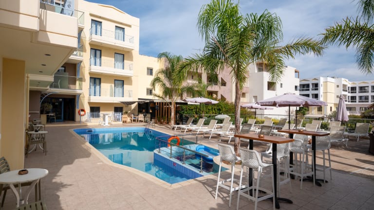 Das Apartmenthotel liegt zentral in Chersonissos, nur 80 m vom Strand entfernt. Es bietet eine günstige Ausgangslage für Erkundungen in der Umgebung.