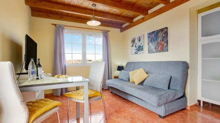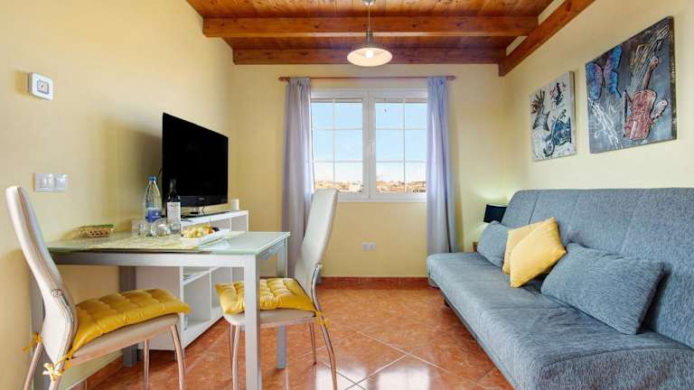 Die Ferienwohnung Casa Paco 3 beinhaltet zwei Schlafzimmer, ein Badezimmer sowie eine voll ausgestattete Küche. Darüber hinaus verfügt die Unterkunft über eine Terrasse mit Meerblick.