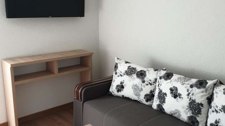 Das Privatzimmer ist mit einem Balkon ausgestattet und verfügt über einen Satelliten-Flachbild-TV sowie eine moderne Küchenzeile mit Kühlschrank, Geschirrspüler und Ofen. Das Badezimmer ist mit einer Dusche, kostenlosen Pflegeprodukten und einem Haartrockner ausgestattet.
