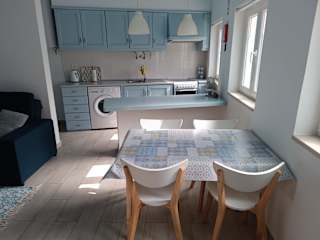 Das Ferienhaus besteht aus einem Schlafzimmer, einem Wohnzimmer, einer voll ausgestatteten Küche mit Kühlschrank und Kaffeemaschine sowie einem Badezimmer mit Bidet und Dusche. Handtücher und Bettwäsche werden bereitgestellt.