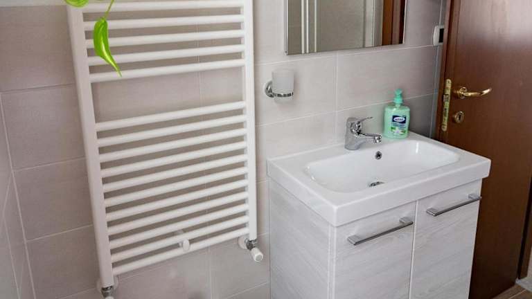 Die Ferienwohnung besteht aus zwei Schlafzimmern, einem Wohnzimmer und einer voll ausgestatteten Küche, die über einen Kühlschrank und eine Kaffeemaschine verfügt. Es stehen zwei Badezimmer mit Bidet und Dusche zur Verfügung. Klimaanlage ist ebenfalls vorhanden, um den Gästen eine angenehme Bequemlichkeit zu bieten.