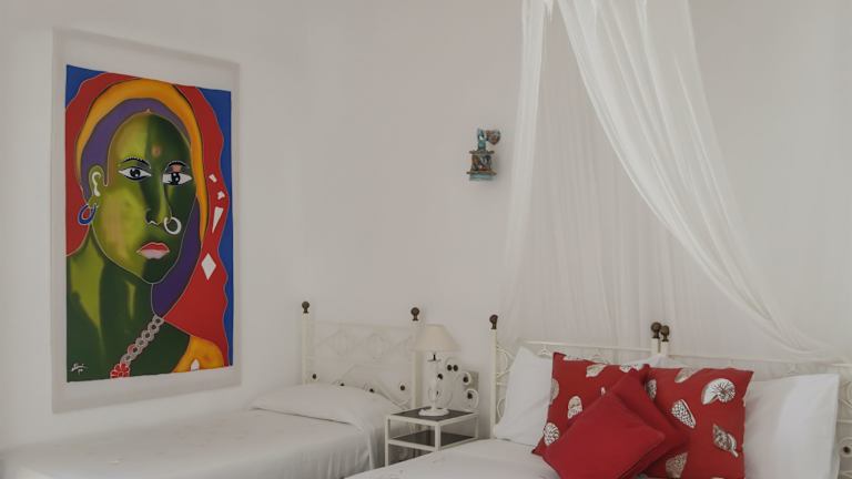 Die Zimmer sind eingerichtet mit Klimaanlage, Kleiderschrank, Terrasse mit Meerblick und eigenem Badezimmer. Zu den Annehmlichkeiten gehören ein Flachbild-TV, Kühlschrank sowie ein Wasserkocher. Ausgewählte Zimmer sind zusätzlich mit einer Küche ausgestattet, die Mikrowelle, Herdplatte und Toaster beinhaltet.