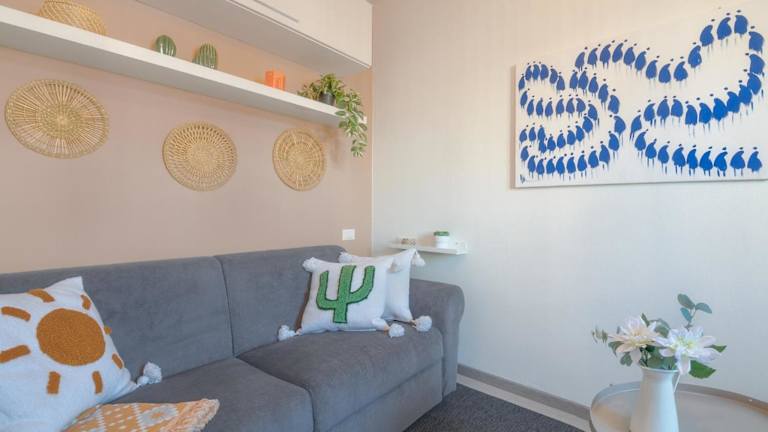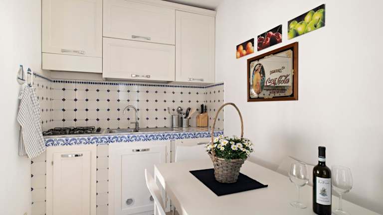 Die Ferienwohnung ist klimatisiert und besteht aus einem Schlafzimmer, einem Wohnzimmer sowie einer voll ausgestatteten Küche mit Kühlschrank und Kaffeemaschine. Zudem ist ein Badezimmer mit Bidet und Dusche vorhanden. Handtücher und Bettwäsche werden bereitgestellt.
