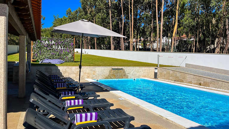 Die Casa Real - Royal Villa Minho's Guest bietet eine angenehme Übernachtungsmöglichkeit mit einem einladenden Poolblick. Gäste haben Zugriff auf einen eigenen Pool, einen Garten, Grillmöglichkeiten sowie eine Sonnenterrasse. Die Unterkunft gewährleistet eine Nichtraucherumgebung in allen öffentlichen und privaten Bereichen. Zusätzlich stehen ein kostenfreier Privatparkplatz und kostenloses Wifi zur Verfügung.