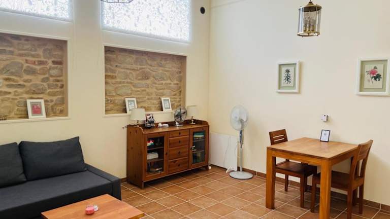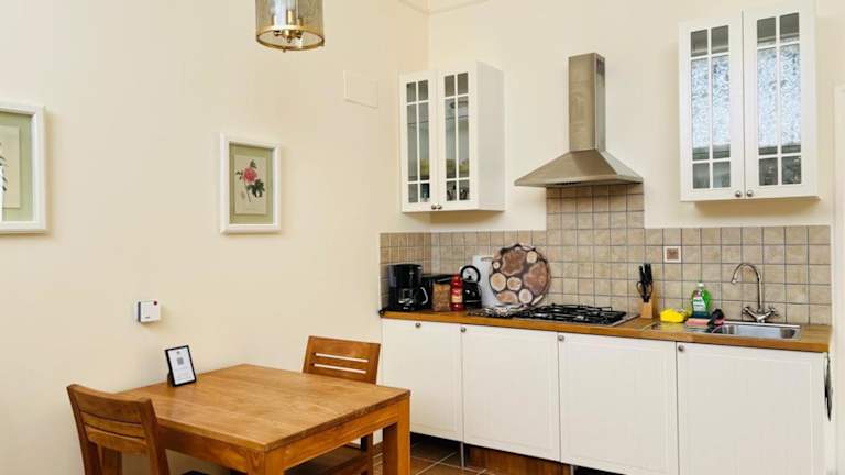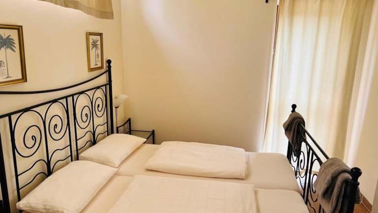 Die Ferienwohnung besteht aus einem Schlafzimmer, einem Wohnzimmer und einer voll ausgestatteten Küche, die einen Kühlschrank, eine Kaffeemaschine sowie alle notwendigen Utensilien umfasst. Das Badezimmer ist mit einem Bidet und einer Dusche ausgestattet. Handtücher und Bettwäsche werden bereitgestellt.