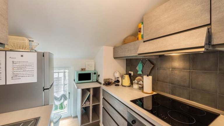Die Ferienwohnung verfügt über eine voll ausgestattete Küche mit Kühlschrank und Kaffeemaschine, ein Wohnzimmer sowie ein Badezimmer mit Dusche. Kostenlose Pflegeprodukte sind ebenfalls vorhanden.