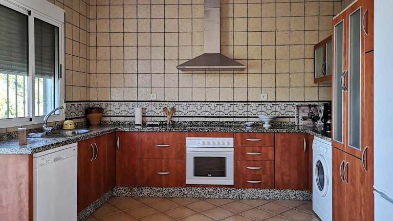 Das Ferienhaus verfügt über eine voll ausgestattete Küche mit Kühlschrank, Geschirrspüler und Ofen, ein Wohnzimmer mit Sitz- und Essbereich sowie drei Schlafzimmer und zwei Badezimmer mit Bidet und Dusche. Handtücher und Bettwäsche werden zur Verfügung gestellt.