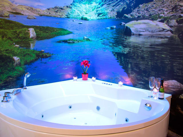 Die Unterkunft umfasst ein klimatisiertes Ferienhaus mit einem Schlafzimmer und einem Badezimmer. Das Badezimmer ist ausgestattet mit einer Dusche, einem Whirlpool und kostenlosen Pflegeprodukten. Die Küche ist mit einem Kühlschrank, einem Geschirrspüler, einem Ofen, einer Kaffeemaschine und einem Wasserkocher ausgestattet.