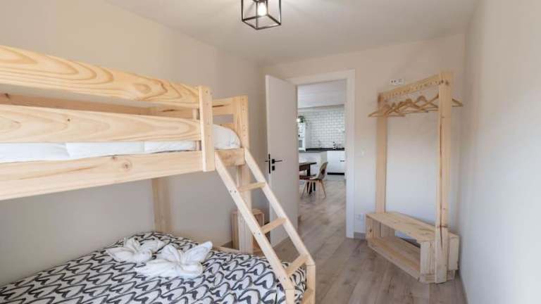 Das Ferienhaus verfügt über 4 Schlafzimmer, 2 Badezimmer und einen Essbereich. Die Gäste profitieren von Bettwäsche und Handtüchern. Eine voll ausgestattete Küche ermöglicht die Selbstverpflegung. Ein Balkon mit Blick auf die Berge sorgt für eine angenehme Aussicht.