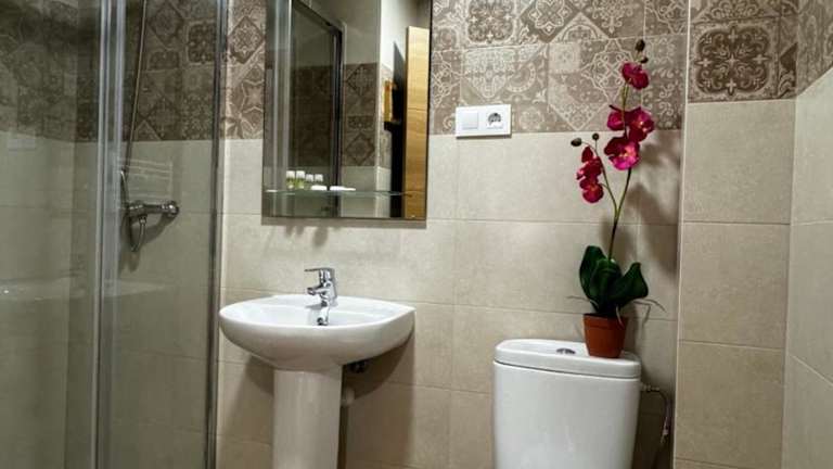 In den Zimmern befindet sich ein voll ausgestattetes eigenes Badezimmer mit Dusche sowie kostenlosen Pflegeprodukten.