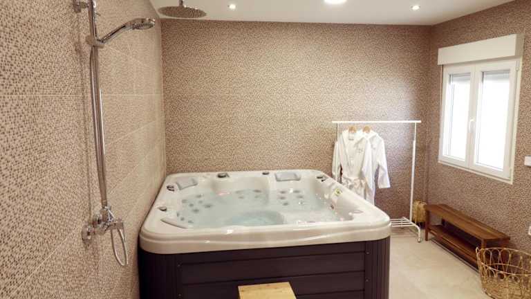Das Meravella Casa Rural bietet einen saisonalen Außenpool, in dem Sie sich an warmen Tagen erfrischen können. Für Kinder gibt es einen Spielplatz, auf dem sie sich austoben können. Im Wellnessbereich des Ferienhauses können Sie sich im Whirlpool entspannen und den stressigen Alltag hinter sich lassen. Genießen Sie die Ruhe und Privatsphäre dieses charmanten Ferienhauses und nutzen Sie die Gelegenheit, die Umgebung zu erkunden und die Sehenswürdigkeiten in der Nähe zu besichtigen.