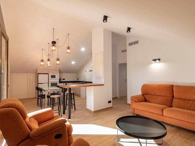 Die Ferienwohnung besteht aus 3 Schlafzimmern, einem Wohnzimmer und einer voll ausgestatteten Küche. Die Küche ist mit Kühlschrank und Kaffeemaschine ausgestattet. Es gibt 2 Badezimmer mit Bidet und Dusche sowie Handtücher und Bettwäsche.