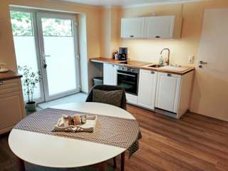 Die Ferienwohnung beinhaltet ein Schlafzimmer und ein Badezimmer sowie eine voll ausgestattete Küche, einen Essbereich und einen Flachbild-TV. Die Terrasse bietet einen Blick auf den Garten. Bettwäsche und Handtücher werden bereitgestellt und sind gemäß den Richtlinien der örtlichen Behörden gereinigt.