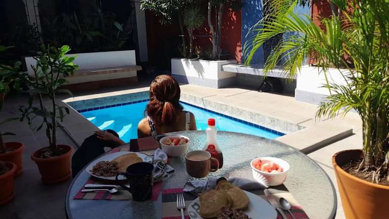 In der Casa Silas Granada Nicaragua werden verschiedene Frühstücksoptionen angeboten, darunter ein à la carte, ein kontinentales oder ein vegetarisches Frühstück. Die Küche ist mit einem Kühlschrank, einem Ofen und einer Mikrowelle ausgestattet.