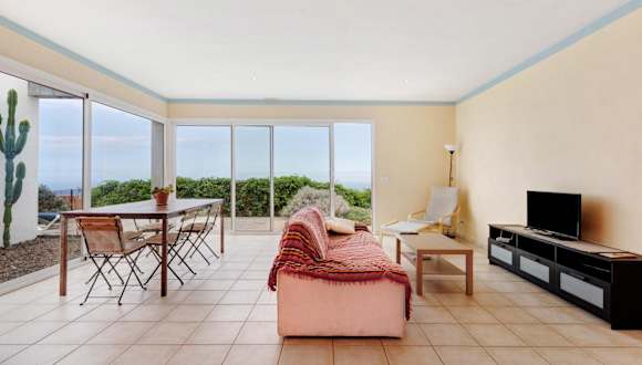 Das Ferienhaus ist ausgestattet mit 2 Schlafzimmern, 2 Badezimmern, Bettwäsche, Handtüchern, einem TV sowie einer voll ausgestatteten Küche. Zudem steht eine Terrasse mit Meerblick zur Verfügung.