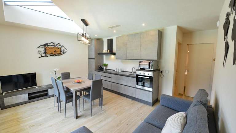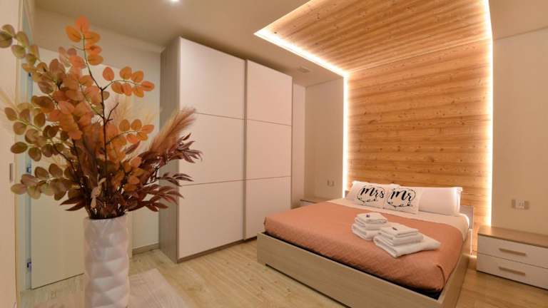 Die Ferienwohnung umfasst zwei Schlafzimmer, ein Wohnzimmer mit Flachbild-TV, sowie eine gut ausgestattete Küche mit Kühlschrank und Geschirrspüler. Zudem steht den Gästen ein Badezimmer mit Bidet zur Verfügung. Handtücher und Bettwäsche werden bereitgestellt, und es ist eine Veranda mit Stadtblick vorhanden.