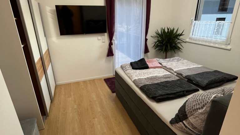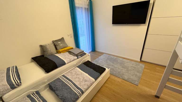 Die Ferienwohnung besteht aus 2 Schlafzimmern und einem Wohnzimmer. Sie ist mit einer voll ausgestatteten Küche, einem Kühlschrank und einer Kaffeemaschine ausgestattet. Zudem hat sie 2 Badezimmer mit Dusche und kostenlosen Pflegeprodukten. Handtücher und Bettwäsche werden zur Verfügung gestellt.