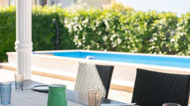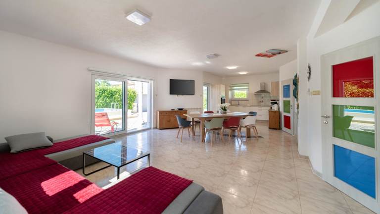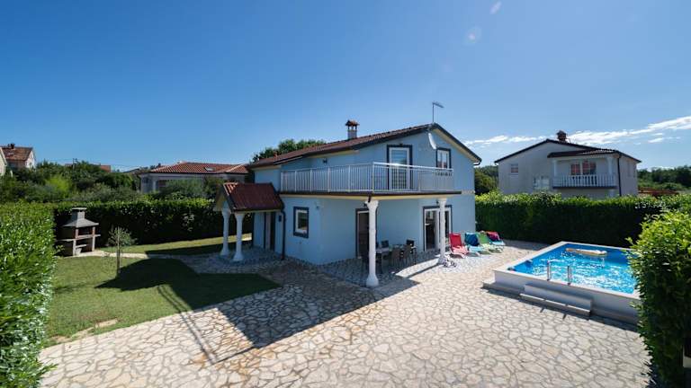 Die Villa verfügt über vier Schlafzimmer, ein Wohnzimmer mit Flachbild-TV sowie eine gut ausgestattete Küche mit Kühlschrank und Geschirrspüler. Zwei Badezimmer mit einer Badewanne sind ebenfalls vorhanden. Handtücher und Bettwäsche werden bereitgestellt, und die Gäste können eine Terrasse mit Gartenblick nutzen.