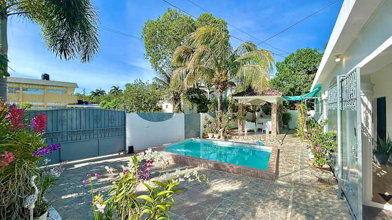 Die Casa Tipo Villa ist eine gemütliche Unterkunft mit einem aussenliegenden Pool, einem einladenden Garten und einer heimeligen Terrasse, ideal für entspannende Ferien und Erholung.