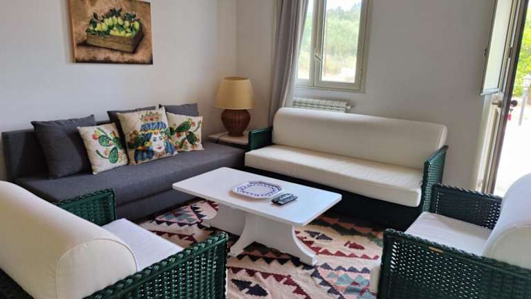 Das Ferienhaus umfasst 2 Schlafzimmer und ein Wohnzimmer. Es ist mit einem Flachbild-TV sowie einer gut ausgestatteten Küche ausgestattet. Das Badezimmer verfügt über ein Bidet und eine Dusche. Handtücher und Bettwäsche sind im Mietpreis inbegriffen.