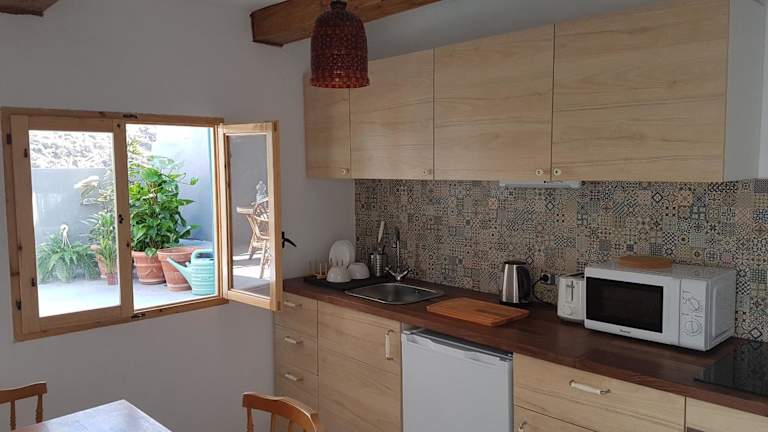 Die Unterkunft Casa Tortuga bietet eine heimelige Atmosphäre mit einer Gemeinschaftsküche und einer einladenden Terrasse, auf der Gäste entspannen können.