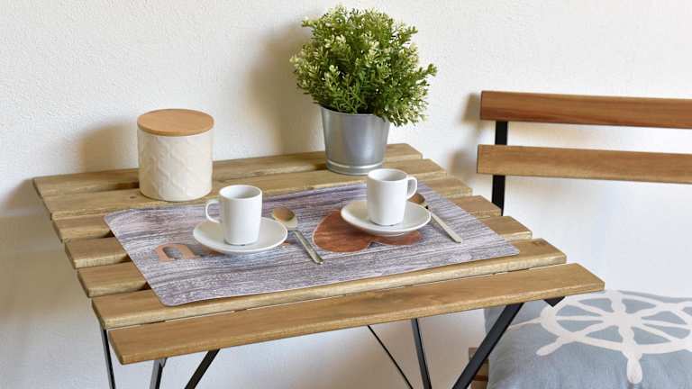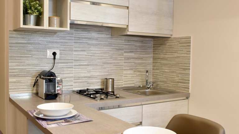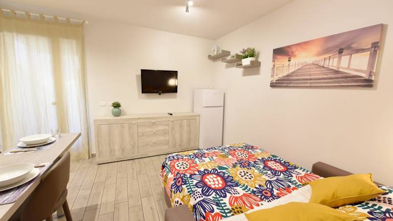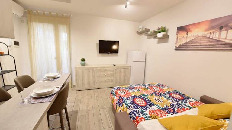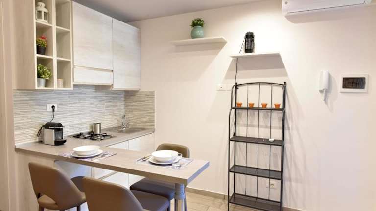 Die Ferienwohnung ist klimatisiert und verfügt über ein Schlafzimmer sowie ein Badezimmer mit Bidet, Dusche und Haartrockner. Eine Küche mit Kühlschrank, Herdplatte und Kaffeemaschine ist ebenfalls vorhanden.