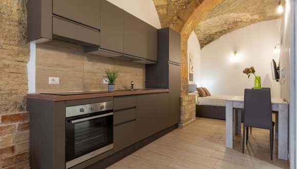 Die Ferienwohnung besteht aus einem Schlafzimmer und einem Wohnzimmer und ist mit einer voll ausgestatteten Küche inklusive Kühlschrank und Kaffeemaschine sowie einem Badezimmer mit Bidet und Dusche ausgestattet. Handtücher und Bettwäsche werden bereitgestellt.