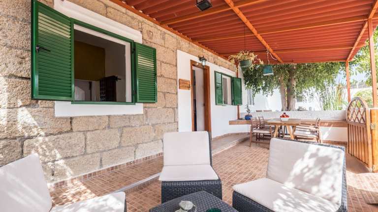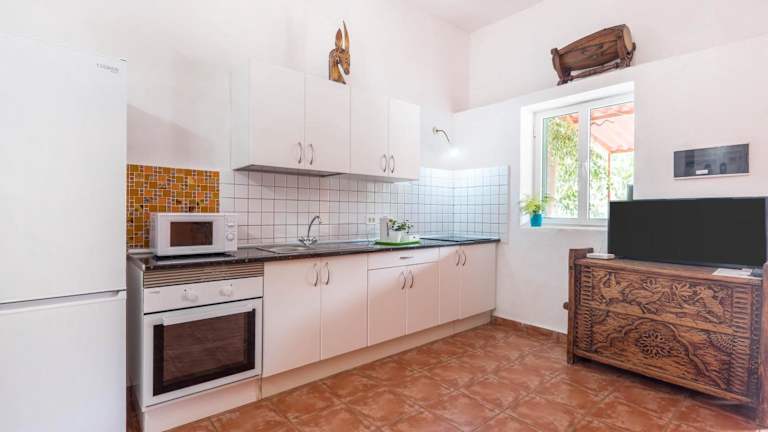 Das Ferienhaus bietet zwei Schlafzimmer und ein Badezimmer, sowie eine voll ausgestattete Küche. Zur Ausstattung gehören Bettwäsche, Handtücher und ein TV mit Satellitenkanälen. Von der Terrasse aus können die Gäste den Blick auf das Meer geniessen.