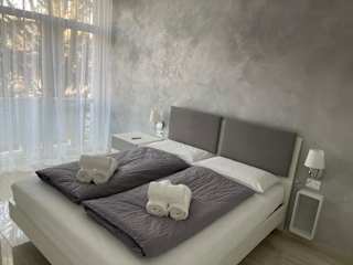 Die Ferienwohnung besteht aus einem Schlafzimmer, einem Wohnzimmer und einer voll ausgestatteten Küchenzeile mit Kühlschrank und Kaffeemaschine. Zudem gibt es ein Badezimmer mit Bidet und Dusche. Ein Flachbild-TV mit Satellitenkanälen ist ebenfalls vorhanden.