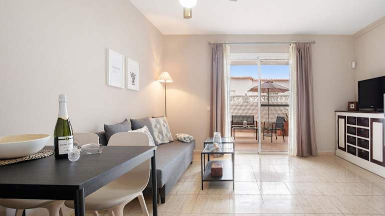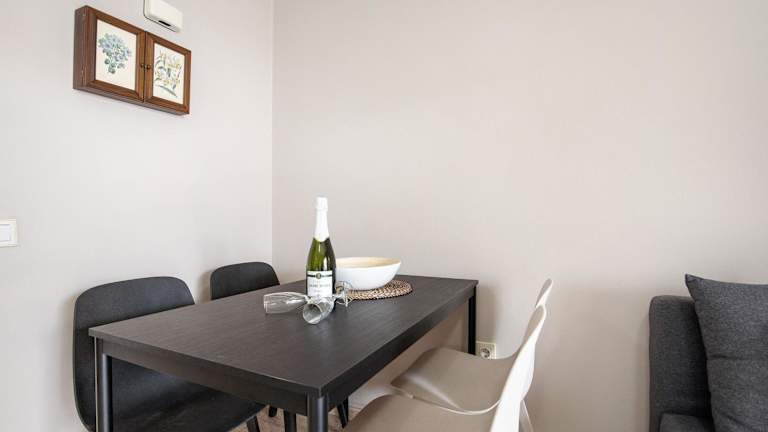 Die Ferienwohnung umfasst ein Schlafzimmer, ein Wohnzimmer und eine voll ausgestattete Küche mit Kühlschrank und Kaffeemaschine. Ein Badezimmer mit Dusche und kostenlosen Pflegeprodukten ist ebenfalls vorhanden. Handtücher und Bettwäsche werden bereitgestellt.