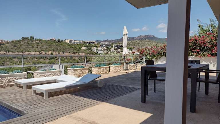 Die Villa besteht aus 3 Schlafzimmern und bietet direkten Zugang zu einem Balkon mit Gartenblick. Zur Ausstattung gehören Klimaanlage, Flachbild-TV und eine voll ausgestattete Küche mit Kühlschrank. Des Weiteren sind ein Sitzbereich, eine Waschmaschine sowie 3 Badezimmer mit Bidet, Dusche und Badewanne vorhanden.