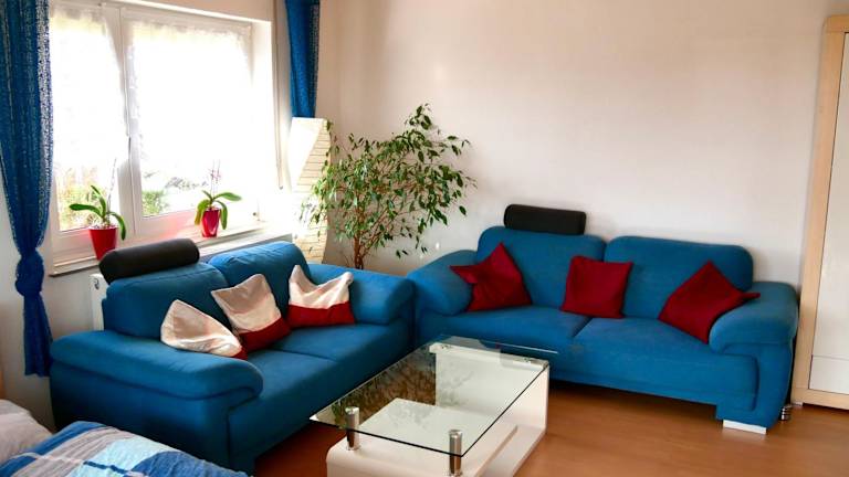 Die CasaJansen - Grosse Wohnung im Dreistädte-Eck bietet eine heimelige Atmosphäre mit einem schönen Balkon und einem Garten. Es stehen zudem kostenlose Parkiermöglichkeiten zur Verfügung.