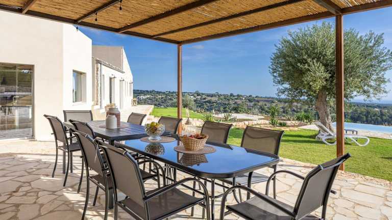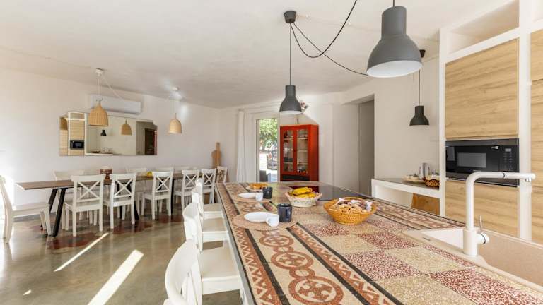 Die Villa bietet eine Ausstattung mit Bettwäsche, Handtüchern, einem TV und einer voll ausgestatteten Küche. Es stehen insgesamt 7 Schlafzimmer zur Verfügung, und die Terrasse lädt mit einem Blick auf die Berge zum Verweilen ein.