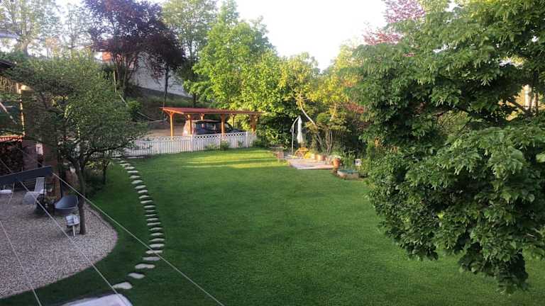 Die Unterkunft bietet eine Ferienwohnung mit Gartenblick, die über ein Schlafzimmer und ein Badezimmer mit Dusche und Bidet verfügt. Die Wohnung ist mit Parkettböden ausgestattet und bietet Zugang zu einem Balkon. Ein Flachbild-TV ist ebenfalls vorhanden. Kostenfreies WLAN steht in allen Bereichen zur Verfügung.