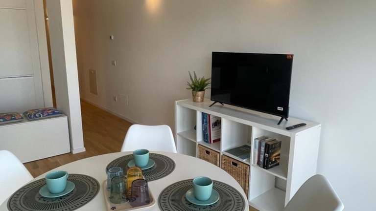 Die Ferienwohnung umfasst 2 Schlafzimmer, eine voll ausgestattete Küche mit Kühlschrank und Geschirrspüler, ein Badezimmer mit Bidet sowie einen Sitzbereich. Sie ist mit einem Flachbild-TV ausgestattet. Handtücher und Bettwäsche werden bereitgestellt. Die Unterkunft ist klimatisiert und Nichtraucherzimmer sind verfügbar.