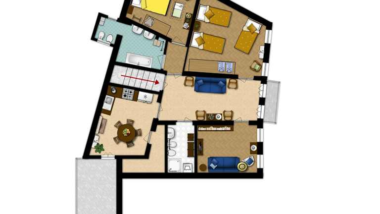 Die Ferienwohnung umfasst 2 Schlafzimmer, ein Wohnzimmer sowie eine voll ausgestattete Küche mit Kühlschrank und Kaffeemaschine. Zudem sind 2 Badezimmer mit Bidet und Dusche vorhanden. Handtücher und Bettwäsche werden bereitgestellt.