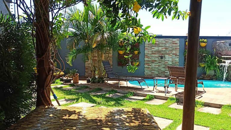 Das Casa Aconchego in Foz do Iguaçu bietet Ihnen eine gemütliche Unterkunft in einer günstigen Lage. Mit kostenfreiem WLAN und kostenfreien Privatparkplätzen bietet diese Unterkunft alles, was Sie für einen angenehmen Aufenthalt benötigen. Genießen Sie den Garten und die Sonnenterrasse und profitieren Sie von der 24-Stunden-Rezeption und der Gemeinschaftsküche. Die Zimmer sind mit allen notwendigen Annehmlichkeiten ausgestattet, einschließlich einer Mikrowelle. Entdecken Sie die nahegelegenen Sehenswürdigkeiten wie die Iguaçu-Wasserfälle und den Nationalpark Iguaçu.